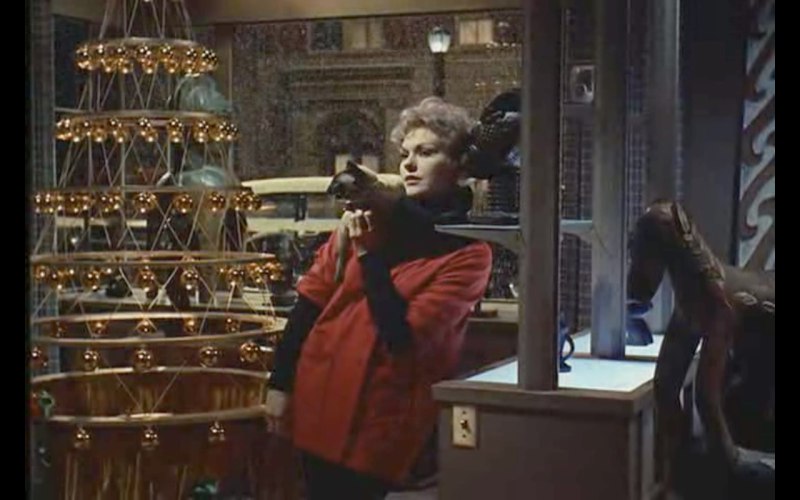 Это романтическая комедия 1958 года "Колокол, книга и свеча". Зацепилась за описание сюжета, решила, что на ночь глядя самое то. И с большим удовольствием все досмотрела, хотя думала, что разобью на два просмотра, чтобы совсем поздно не ложиться.