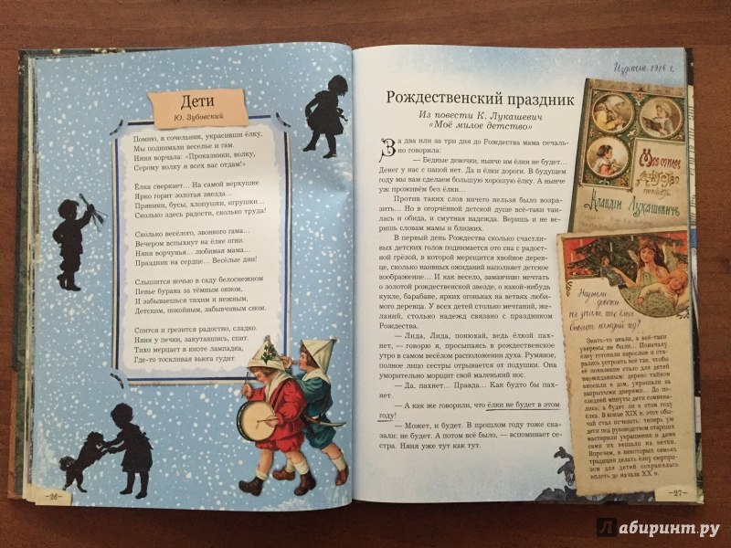 Первая книга посвящена истории Рождественских праздников. По возрасту детей она где-то на начальную школу рассчитана, но это уже от ребенка зависит. Кому-то она уже лет в 5 подойдет, да и взрослым она будет интересна. Очень красивое издание.. Я с удовольствием ее полистала, но пока оставила для предновогодних вечеров. Не хочется все это читать и рассматривать в суете. Книга состоит из подборки рождественских рассказов, стихов и любопытных фактов из истории праздника. Все э снабжено красивыми иллюстрациями из журналов и книг начала 20 века. Так что даже не читая, а просто листая книгу - получаешь удовольствие.