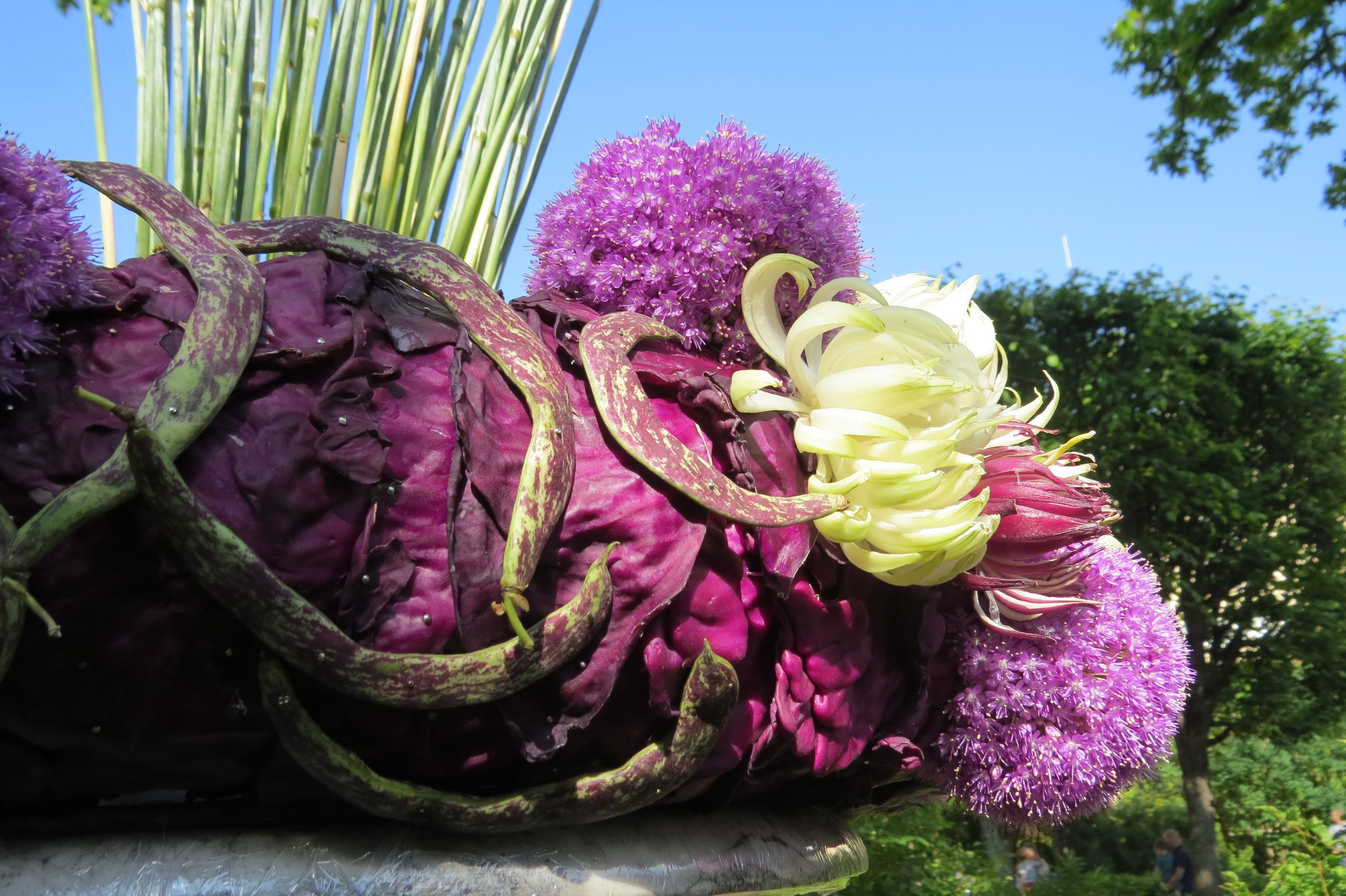 Очень понравились вот такие композиции с цветами из овощей.