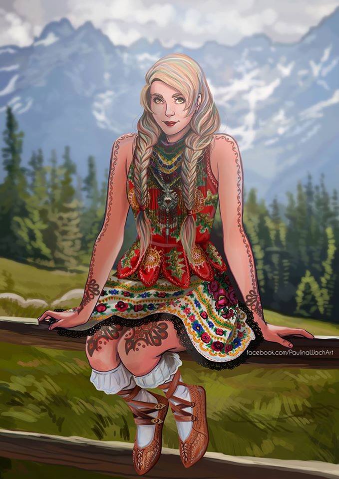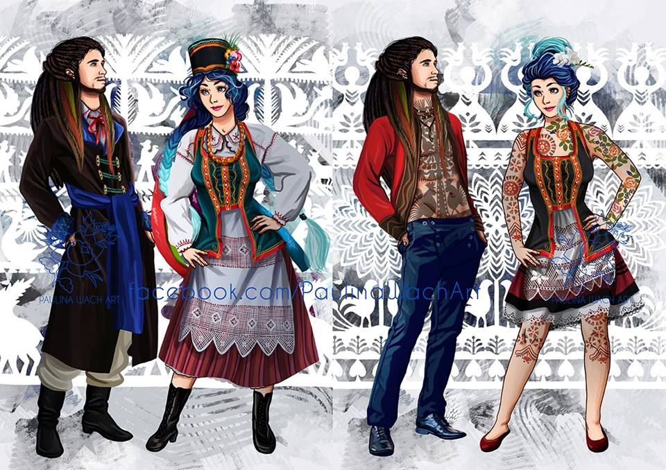 Jul. 14th, 2018 03:47 pmПодобная графика обычно вне поля моих интересов, но этот проект польской художницы Paulina Wach (Паулина Вах) меня чем-то зацепил. Называется он MODERN FOLKING. Автор работ пытается сочетать современные модные тенденции и фольклорный польский костюм. Как видно на первых фото за основу берется какой-то реальный народный костюм и делается современная вариация на его тему. В своем интервью она так объяснила идею проекта и его историю. На создание ее вдохновил исторический комикс Axis Powers Hetalia. В нем персонажи являются некими собирательными персонификациями своей страны. У поляков это Feliks Łukasiewicz. И художнице захотелось создать свой интересный вариант поляков в таком вот жанре комикса, чтобы видна была национальная идентичность, но образы были современными.