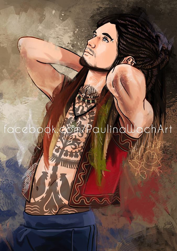 На первых фото как раз даны развороты, где с одной стороны национальный костюм,а с другой современная вариация на тему. Популярные польские узоры художница перенесла на тела героев виде грима, мехенди и тату.
